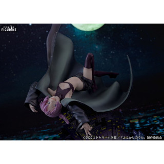 Cette figurine, réalisée par le fabricant Proof, capture parfaitement l'esprit de Nazuna. Mesurant environ 31 centimètres, elle est à l'échelle 1/7 et fabriquée en PVC. Elle illustre Nazuna dans une posture acrobatique, flottant dans les airs, sa longue cape sombre formant une ombre inquiétante autour d'elle. L’expression malicieuse de Nazuna, ses cheveux lilas et ses vêtements révélateurs témoignent de sa personnalité décalée. Le socle de la figurine, qui représente la silhouette d'une ville nocturne, ajoute une touche artistique à l’ensemble, renforçant l'atmosphère de la série. Cette pièce est idéale pour les collectionneurs et les fans de "Call of the Night", offrant une représentation saisissante de Nazuna dans toute sa splendeur vampirique.