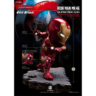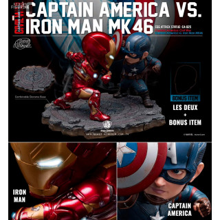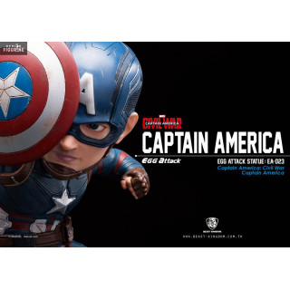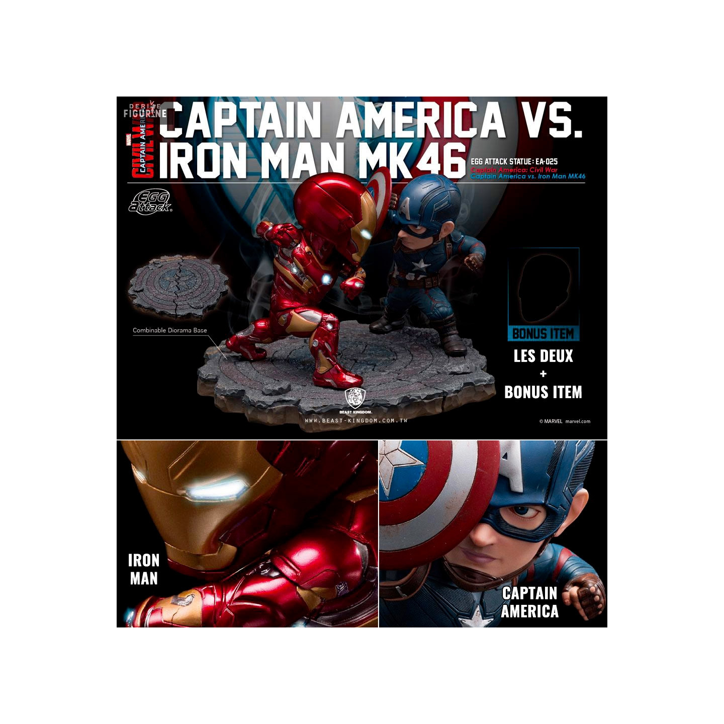 Figurine officielle au choix entre Captain America, Iron Man ou Les deux en résine mesurant environ 20 centimètres de haut. Elle est issue de la collection Egg Attack. Le fabricant est Beast Kingdom.
