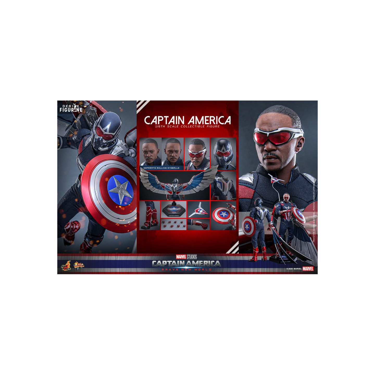 Figurine officielle de Captain America mesurant environ 30 centimètres de haut, à l'échelle 1/6. Elle est issue de la collection Movie Masterpiece. Le fabricant est Hot Toys.