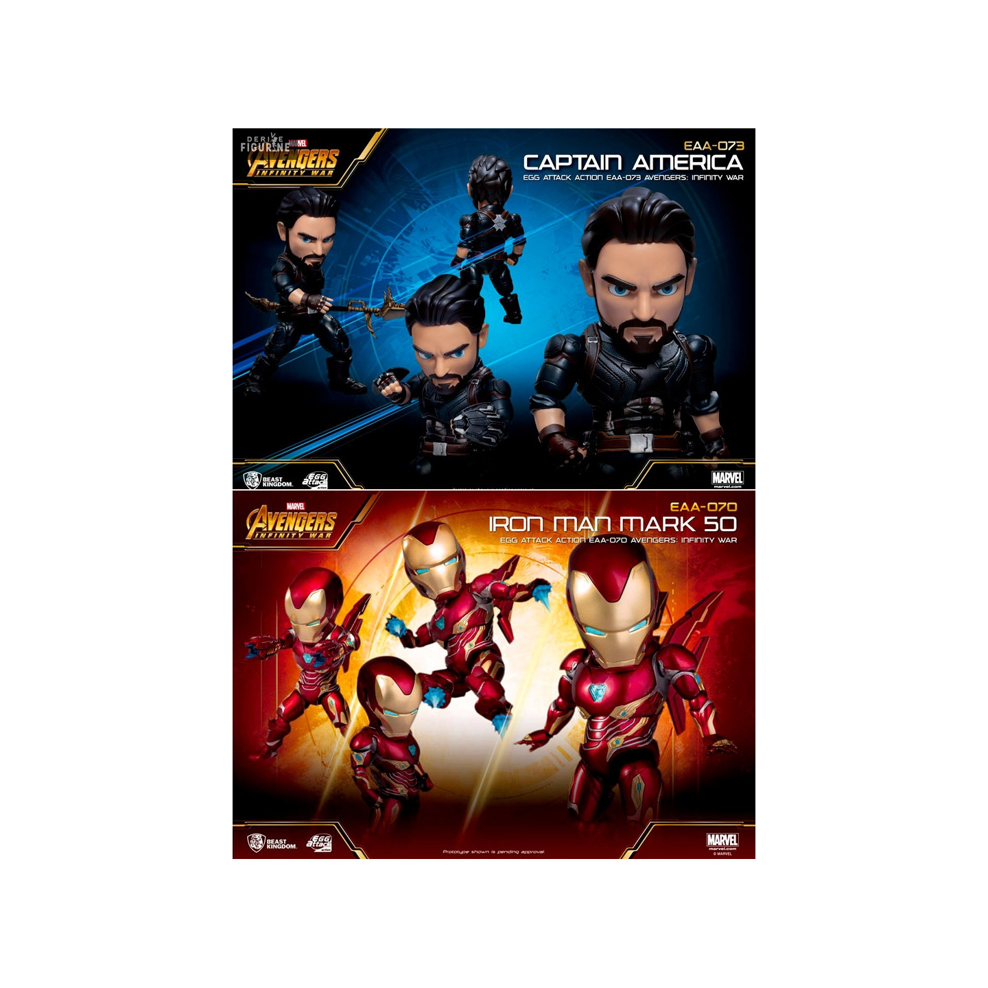 Figurine officielle au choix entre Captain America ou Iron Man mesurant environ 16 centimètres de haut. Elle est issue de la collection Egg Attack. Le fabricant est Beast Kingdom.
