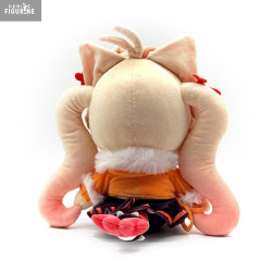 Entièrement fidèle à son apparence, la peluche présente ses longs cheveux blond-rosé, ses oreilles félines, ses yeux dorés perçants et une petite bouche froncée pleine de caractère. Son sweat orange orné du symbole en spirale, les manches à fourrure blanche et le short noir complètent ce look adorable et reconnaissable. Les finitions sont douces et détaillées, jusque dans les petits accessoires rouges dans ses cheveux.