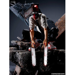 Figurine officielle de Chainsaw Man mesurant environ 15 centimètres de haut. Elle est issue de la collection S.H. Figuarts. Le fabricant est Bandai.