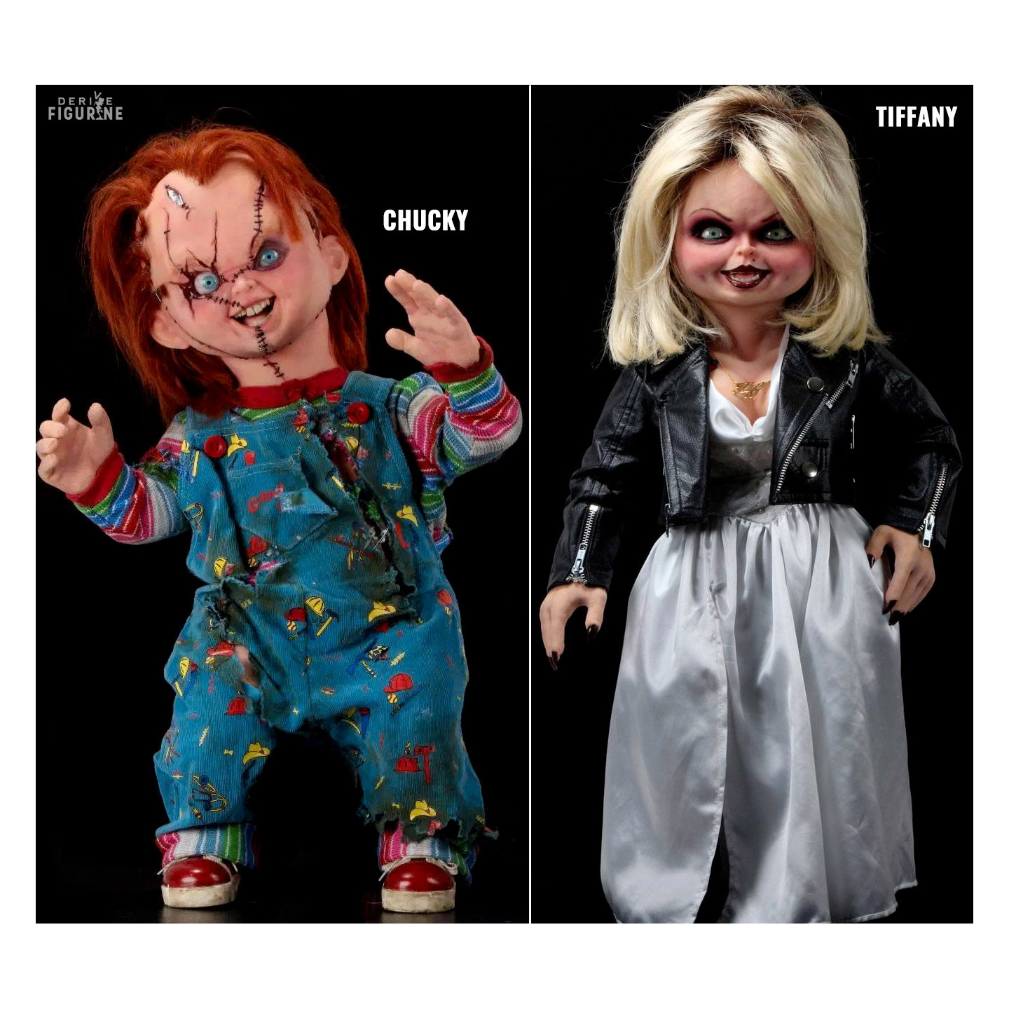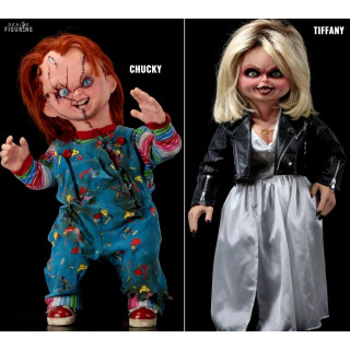 La Fiancée de Chucky propose un film d'horreur où le criminel Chucky va pouvoir se lancer dans une nouvelle série de meurtre en compagnie de son ex qui est devenue une poupée, il s'agit de Tiffany. Ces deux poupées sont à l'échelle 1/1 et vous avez le choix entre le tueur en série Chucky ou la "belle" Tiffany !