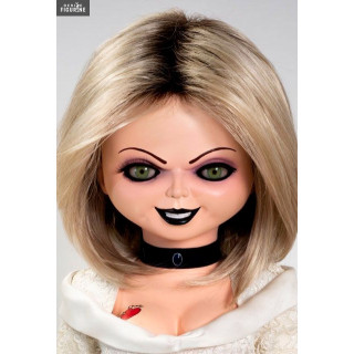 Les histoires de famille ne sont jamais simple, et il en va de même lorsque vous vous êtes réincarné dans des poupées. Cela n'a néanmoins pas empêché Chucky et Tiffany d'avoir un enfant. En tout cas, vous avez donc devant vous la réplique de la poupée de Tiffany qui porte de beaux vêtements en tissu, et on peut même apercevoir le tatouage qu'elle porte sur la poitrine.