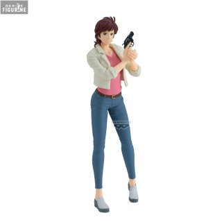 Cette figurine en PVC de 19 cm, fabriquée par Banpresto, capture Kaori Makimura dans une posture prête à l'action, arme en main et avec une expression déterminée. Fidèle à son style vestimentaire emblématique, elle porte une veste blanche sur un haut rose et un pantalon moulant bleu. Les détails minutieux de cette figurine rendent hommage à la nature forte et protectrice de Kaori, rendant cette pièce indispensable pour les collectionneurs fans de City Hunter.