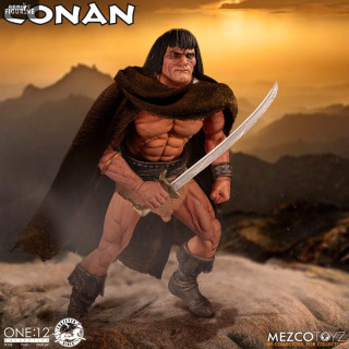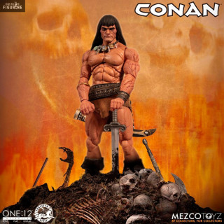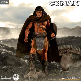 Figurine officielle de Conan le Barbare mesurant environ 17 centimètres de haut, à l'échelle 1/12. Elle est issue de la collection One:12. Le fabricant est Mezco Toys.