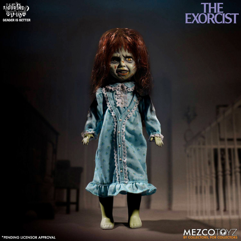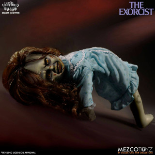 Poupée officielle de Regan avec vêtements en tissu mesurant environ 25 centimètres de haut. Elle est issue de la collection Living Dead Dolls. Le fabricant est Mezco Toys.
