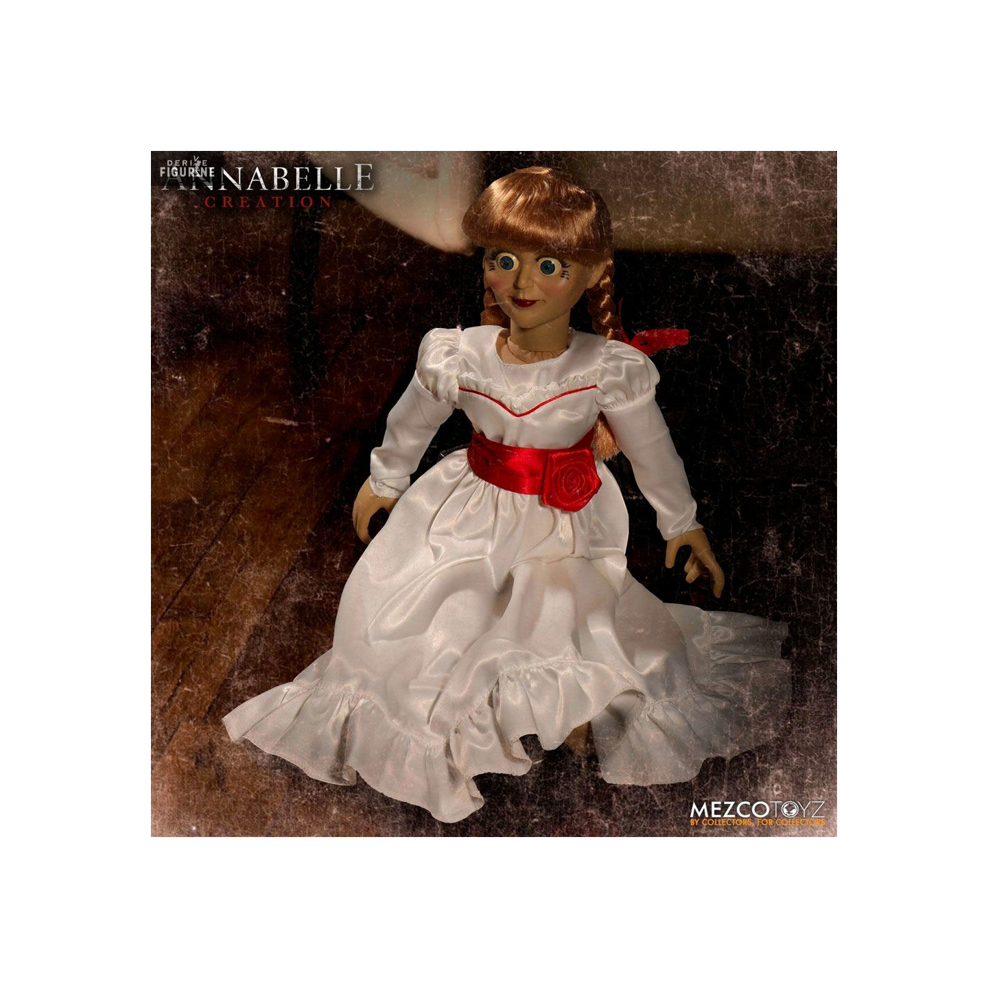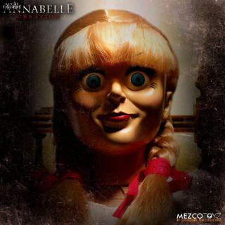 Poupée officielle de Annabelle mesurant environ 46 centimètres de haut. Le fabricant est Mezco Toys.