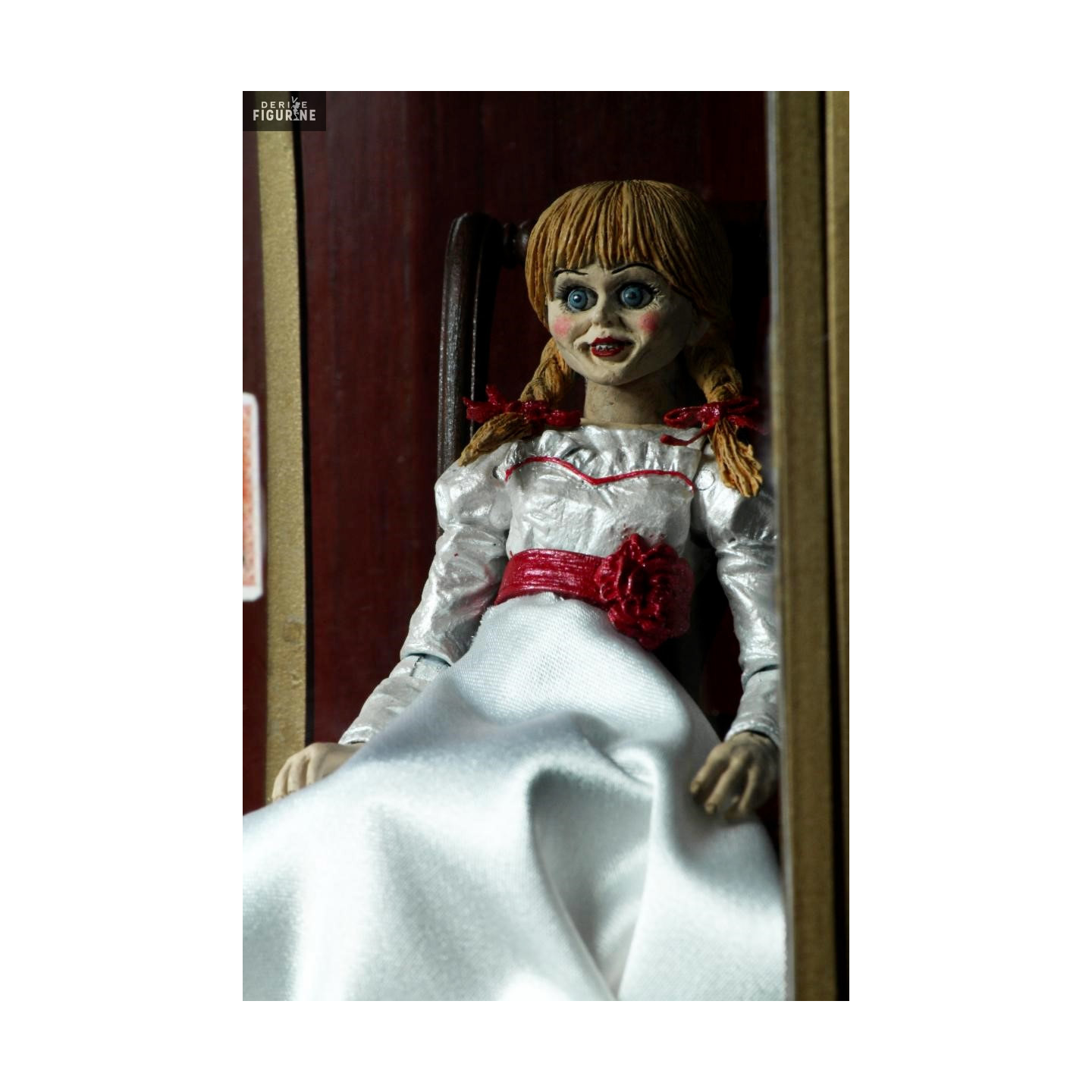 Ed et Lorraine Warren ont dans leur maison une pièce avec de nombreux objets envoûtés ou hantés qu'il ne faut pas toucher. Malheureusement, la curiosité d'une jeune fille va les réveiller. Pourtant, il est bien écrit sur la boîte d'Annabelle de ne l'ouvrir sous aucun prétexte, mais si pour vous aussi la tentation est trop grande, vous pouvez vous offrir cette figurine avec des visages alternatifs et des vêtements en tissu.
