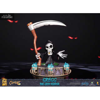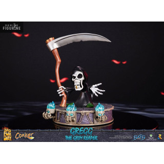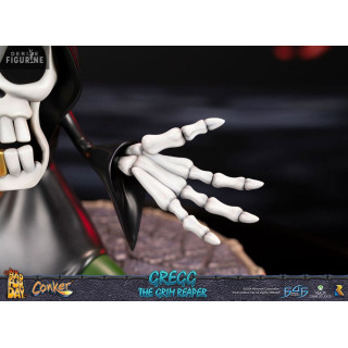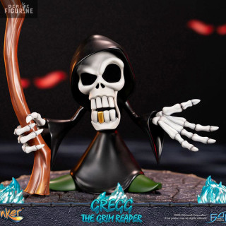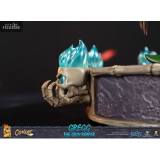 Figurine officielle de Gregg the Grim Reaper en résine d'environ 36 centimètres de haut. Le fabricant est First 4 Figures.