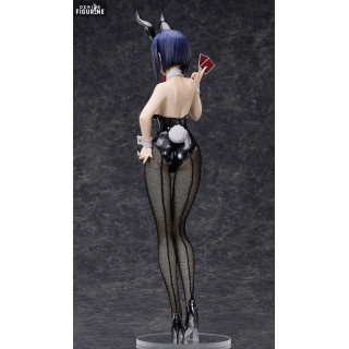 Cette figurine Bunny à l’échelle 1/4, d’une hauteur impressionnante d’environ 47 centimètres, propulse Faye dans un tout autre registre visuel. Toujours aussi assurée, elle porte ici un body noir brillant moulant, des collants résille en tissu véritable, et les incontournables oreilles de lapin, le tout dans une pose confiante, cartes en main. Le choix du noir renforce son aura énigmatique, tandis que les détails comme le nœud papillon rouge, les manchettes blanches et le pompon blanc à l’arrière apportent une touche espiègle et rétro chic. La finition est soignée, fidèle aux standards élevés de FREEing, qui excelle dans ce format de figurine imposant et sophistiqué.