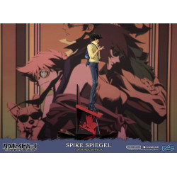 Figurine officielle de Spike Spiegel en résine mesurant environ 34 x 14,5 x 14 centimètres, à l'échelle 1/8. Le fabricant est First4Figures.