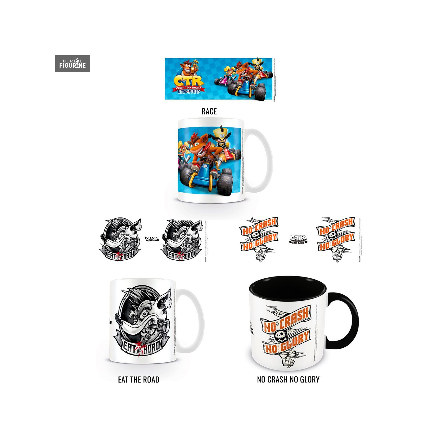 Crash Team Racing reviendra très bientôt grâce à un remaster ! Le jeu a pour but de vous faire vivre une expérience similaire à Mario Kart mais avec les personnages de l'univers de Crash Bandicoot ! Vous avez ainsi trois modèles de mug au choix pour vous préparer à la course : Race, Eat the Road ou No Crash No Glory.