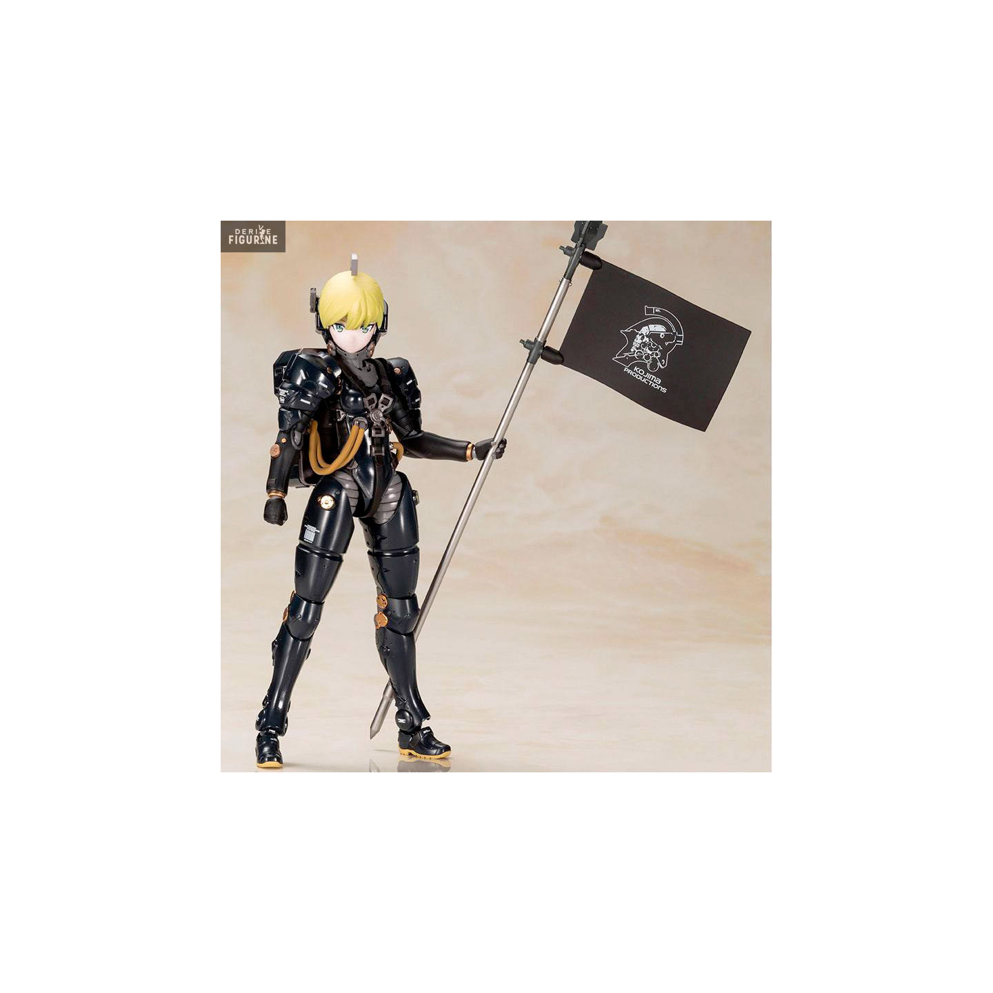 La sculpture met en valeur les lignes anguleuses de son armure : épaulières renforcées, tubulures dorées reliant les injecteurs dorsaux et plaques de protection articulées sur les cuisses. Chaque panneau d’ABS et PS s’ajuste par emboîtement sans colle, offrant une modularité étonnante. La silhouette s’allonge sur environ 17 cm, le drapeau noir orné de l’emblème Kojima Productions apportant une dimension narrative forte, comme si Ludens venait de poser le pied sur un nouveau monde.