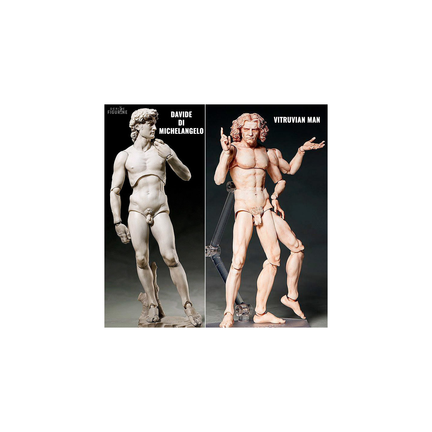 Figurine officielle au choix de Davide di Michelangelo (15 cm) ou Vitruvian Man (16 cm). Elle est issue de la collection Figma. Le fabricant est FREEing.