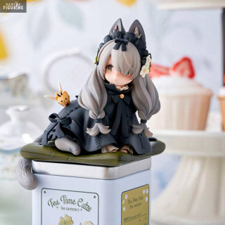 Figurine officielle de Tea Time Cats British Shorthair en PVC mesurant environ 18 centimètres de haut. Le fabricant est Ribose.