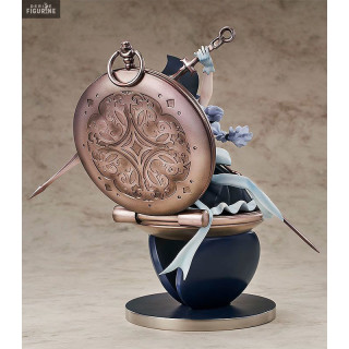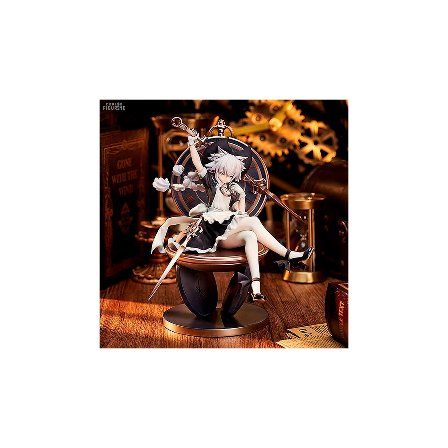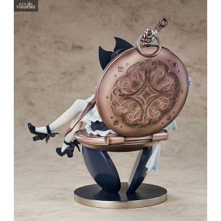 La jeune demoiselle que vous avez sous les yeux porte une tenue de maid et vous pouvez voir qu'elle a aussi des petites oreilles de chats. Ce qui est mignon, c'est qu'elle est assise sur une montre à gousset et qu'elle se sert des aiguilles comme épées. Les détails de cette statuette sont vraiment top et donne un résultat très joli.