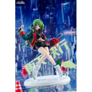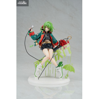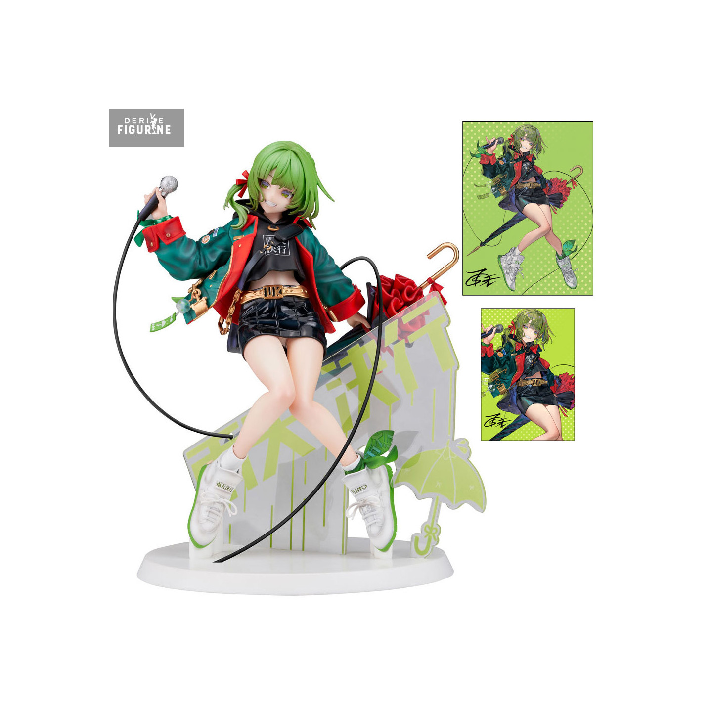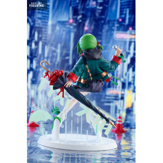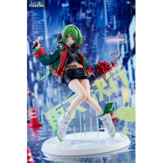 Du côté sculpture, on est sur du haut niveau. Chaque détail compte : les inscriptions sur ses baskets, les textures de sa jupe en simili-cuir, les jeux de contraste entre la veste oversize et sa silhouette fine. Le parapluie accroché à sa hanche, les écouteurs qui dépassent, et son regard vif… tout respire le dynamisme. Haute de 22 cm à l’échelle 1/7, cette figurine en PVC de chez Astrum Design est pensée pour capter l’instant d’un concert urbain imaginaire.