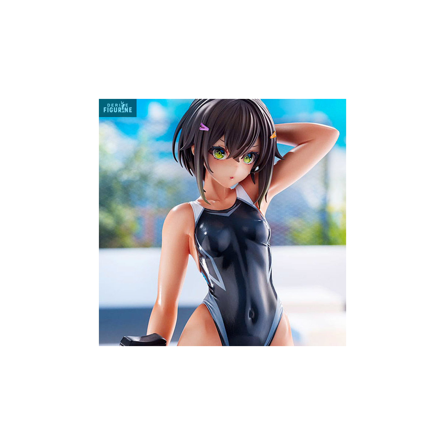 La collection des figurines en provenance des artbook illustrés par Fukai Ryosuke continue et on retrouve ici la magnifique et somptueuse Buchou-chan en version of the Swimming Team. La jeune femme fait partie de l'équipe de natation la retrouve ici dans une tenue faites pour s'exercer dans la piscine ! Arme en main, elle est extrêmement belle et possède de magnifiques yeux verts.