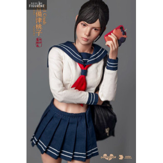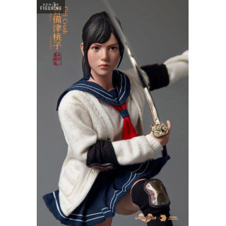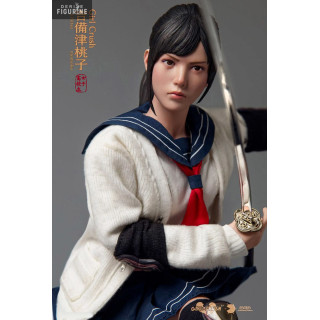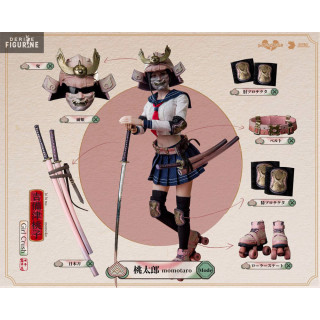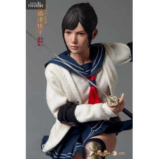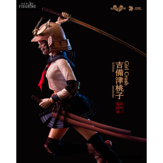 Figurine officielle de Kibitsu Momoko mesurant environ 30 centimètres de haut, à l'échelle 1/6. Le fabricant est Asmus Collectible.