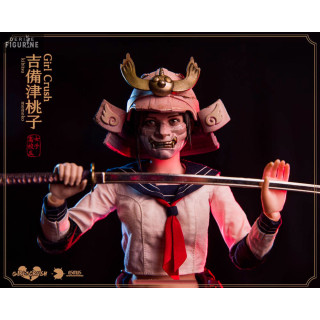 Girl Crush est une collection originale par Asmus et voici la belle Kibitsu Momoko, une lycéenne qui joue les samouraïs armées de ses Katanas. Elle est aussi vendue avec une tonne d'accessoires comme des rollers et même un super socle décor qui en met plein la vue !