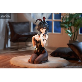 La figurine met en scène Ishimi Yokoyama dans une pose saisissante, assise à genoux dans une tenue de lapine noire élégante. Les détails minutieux, des oreilles de lapin aux gants assortis, démontrent l'attention méticuleuse portée à la conception. La chevelure brune fluide ajoute une touche de réalisme à cette interprétation artistique.