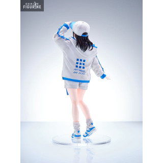 Salut à toi, passionné de figurines ! Prépare-toi à rencontrer une création unique en son genre : la figurine d'Isshiki Seiran, issue d'une illustration originale de Mashiro K.ta. Arborant une tenue sportive bleue et blanche, avec veste et casquette, cette figurine respire l'énergie et la détermination.