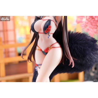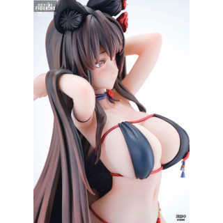 L'illustration de TACCO prend vie avec un réalisme saisissant, des boucles voluptueuses de ses longs cheveux noirs, qui encadrent son visage expressif, aux détails délicats de sa tenue, révélant un équilibre entre audace et style. La queue duveteuse qui accompagne la figurine est non seulement un élément de design distinctif, mais elle accentue aussi la singularité et le charme du personnage.