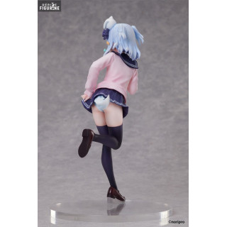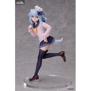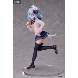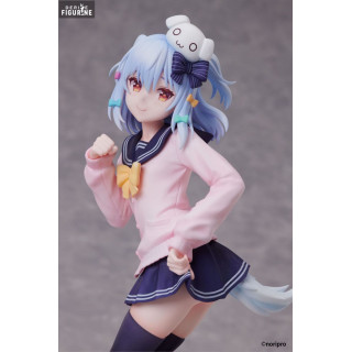 Tamaki Inuyama est connue pour sa personnalité enjouée et son style unique, éléments que cette figurine transpose à la perfection. Elle est vêtue d'une tenue scolaire qui allie classicisme et modernité, avec une jupe bleue marine et un blazer rose doux, reflétant son style mignon et accessible. Les cheveux de Tamaki, d'un bleu ciel lumineux, sont agencés en deux couettes hautes, décorées de rubans assortis, qui ajoutent un charme vibrant à son apparence.