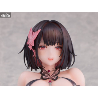 Les détails de la tenue de Lily sont particulièrement impressionnants. Le contraste entre le noir élégant et les touches de rose vif, notamment les papillons délicatement posés sur ses cheveux et son bras, créent un effet visuel captivant. La texture de sa robe et les plis subtils de son tissu sont finement sculptés, démontrant l'expertise et le soin apportés par les artisans de Model Way.