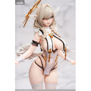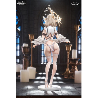 La figurine de Sheng Wan Jiao Zhu Cheshire se distingue par son design élégant et ses finitions soignées. Vêtue d'un costume audacieux qui mélange éléments angéliques et une touche de sensualité, Cheshire capte instantanément l'attention. Les ailes délicates, le halo doré flottant au-dessus de sa tête et les ornements croisés ajoutent une dimension mystique à son apparence, rappelant une figure céleste descendue sur terre.