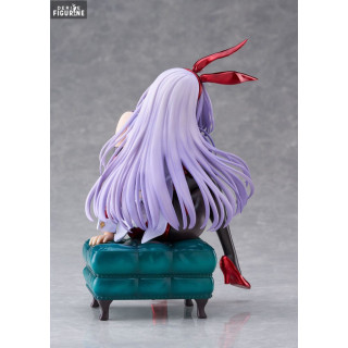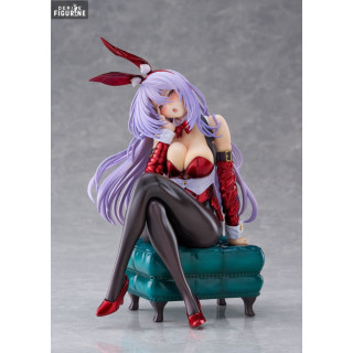 Dans l'univers de Shy Girls in Love, Tsuduri Amagasa est un personnage qui attire l'attention par son charme et son allure distincte. Cette version Christmas Santa Color, Bunny Style capture une facette festive et sensuelle du personnage. Vêtue d'une tenue de lapin rouge et blanc rappelant les couleurs de Noël, Tsuduri Amagasa se présente dans une pose élégante et relaxée, assise sur un fauteuil vert. Ses longues jambes, recouvertes de collants noirs, et sa chevelure lilas fluide ajoutent une touche supplémentaire à son style captivant. Les détails de cette figurine, notamment les oreilles de lapin, les talons rouges, et les éléments festifs de sa tenue, illustrent une combinaison réussie entre sensualité et atmosphère de fête.