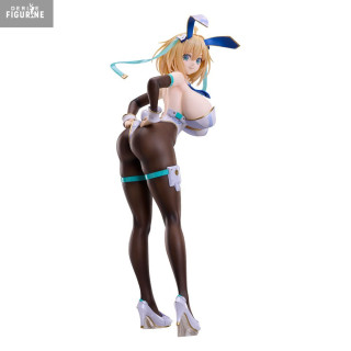 Sophia F. Shirring revient dans une somptueuse version "3rd Bunny", combinant élégance et audace dans une figurine de grande qualité. Cette création originale représente Sophia dans une tenue de lapine moderne, avec des détails qui soulignent son charme et son allure captivante. Ses longs bas noirs contrastent magnifiquement avec les éléments blancs et bleus de sa tenue, tandis que ses oreilles de lapine, parfaitement stylisées, ajoutent une touche espiègle et sophistiquée. La pose de Sophia, légèrement inclinée, met en avant sa silhouette et son expression malicieuse, capturant l'essence d'une héroïne à la fois séduisante et confiante.