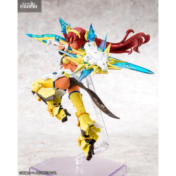 Dans son apparence Sunshine, Ame No Uzume se distingue par une armure sophistiquée, composée de plaques futuristes et d’éléments stylisés en forme de rayons lumineux, évoquant le soleil et l’énergie pure. Son arme imposante, une gigantesque lame aux nuances de bleu et d’or, souligne son rôle de guerrière tout en ajoutant une touche de mysticisme et de modernité à son design. Chaque élément de cette figurine, des accessoires finement travaillés aux motifs délicats de son armure, illustre l’attention portée aux détails par Kotobukiya, un fabricant reconnu pour ses modèles à monter et ses pièces de haute qualité.