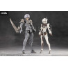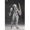 La sculpture met en valeur chaque détail de son équipement : les épaulettes anguleuses ornementales, le plastron évoquant une cage thoracique stylisée, et les jambières articulées qui assurent mobilité et robustesse. Sa chevelure argentée, ciselée en mèches dynamiques, contraste avec l’armure brute grise. En tant que Plastic Model Kit, ce prototype militaire s’assemble sans colle grâce au système snap-fit : les pièces en ABS et PS se fixent sur un squelette interne équipé de polycaps.