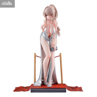 Issue d’une illustration signée Gwan-E, Erin prend ici vie avec fidélité. Son attitude réservée contraste avec la coupe audacieuse de sa robe argentée, fendue jusqu’à la hanche. Penchée légèrement vers l’avant, les mains croisées devant elle, elle semble surprise ou intimidée, ajoutant une dimension narrative discrète à la scène.