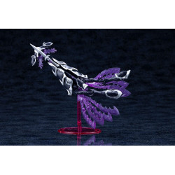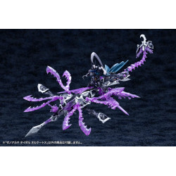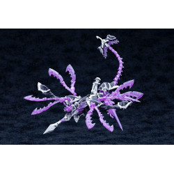 Visuellement, la figurine présente un corps articulé mêlant noir, gris métallisé et de larges éléments violets translucides. Ces appendices, longs et segmentés, évoquent des tentacules ou des lames d’énergie. Plusieurs d’entre eux s’étendent en éventail autour de la structure centrale. La silhouette est allongée et profilée. On distingue également une section arrière dressée, terminée par une extrémité en pointe, ainsi que des segments osseux stylisés qui renforcent son allure agressive et biomécanique.