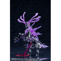 La finition met en valeur les contrastes entre les surfaces opaques et les pièces translucides. Les détails sculptés sont nets, notamment au niveau des articulations et des plaques qui imitent un exosquelette. Le plastique violet laisse passer la lumière, donnant un effet d’énergie interne. Avec ses 35 centimètres de longueur, le modèle offre une présence ample et dynamique, idéale pour une exposition horizontale.