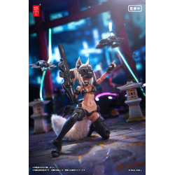 Visuellement, Honoka arbore une peau bronzée, de longs cheveux blancs attachés en queue de cheval et des oreilles de renard dressées sur la tête, assorties à une épaisse queue blanche dans le dos. Elle porte un bikini noir avec quelques touches de sangles et de boucles, combiné à une grande protection de jambe et de hanche noire sur son côté droit, des gants sans doigts et des bottes montantes noires. La figurine est fournie avec plusieurs paires de mains, des visages alternatifs, un casque/masque avec oreilles, un fusil futuriste, une arme de poing et trois drones montés sur des supports transparents hexagonaux qui se fixent sur des socles assortis. Les articulations et les bras de support permettent de la disposer en scènes aériennes ou en pose de tir tout en assurant une bonne stabilité.