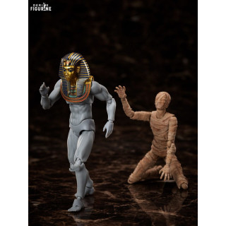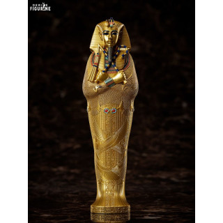 Cette figurine de 15 cm, issue de la collection Figma de FREEing, propose une interprétation saisissante et articulée de Tutankhamun sous la forme d’une momie réanimée. Son corps est soigneusement sculpté avec des bandelettes finement détaillées, donnant un réalisme impressionnant à la texture vieillie de ses bandages antiques. L’un des éléments phares de cette pièce est son masque doré amovible, une réplique fidèle du célèbre artefact exposé au Musée du Caire. Il peut être retiré pour révéler une version plus macabre du visage du pharaon, ajoutant une touche encore plus mystique à cette figurine.