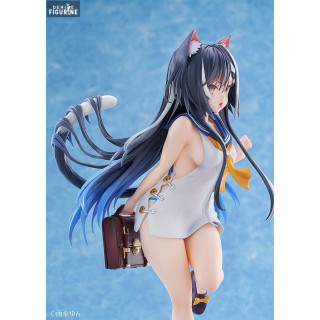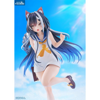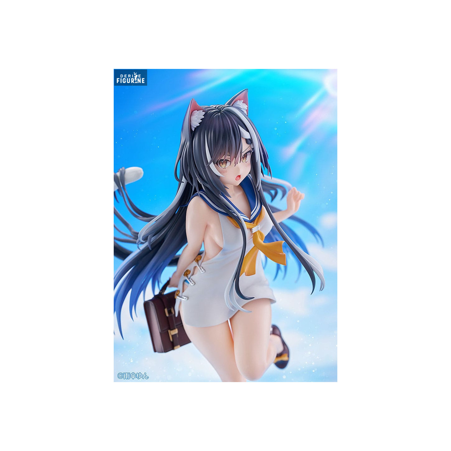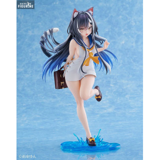 La figurine de Toshishita Kanojo, inspirée de l'illustration de l'artiste talentueux Amagasa Yun, capture un moment de fraîcheur estivale avec une finesse impressionnante. Cette jeune fille aux allures félines arbore des oreilles et une queue de chat, ajoutant une touche de fantaisie et de charme à sa tenue scolaire classique. Avec son uniforme léger et sa pose dynamique, elle semble sauter gracieusement sur l'eau, créant des éclaboussures cristallines parfaitement sculptées.
