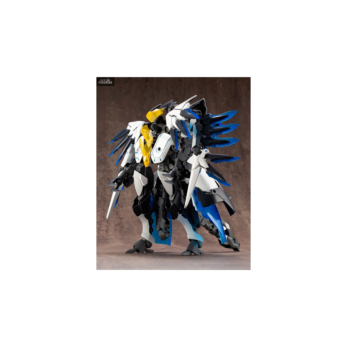 Cette figurine à construire est un model kit en provenance de Gigantic Arms et il est tout à fait compatible avec d'autres produits des gammes Frame Arms et Hexa Gear du fabricant. On retrouve ainsi ici les ailes de Lucifer qui offrent bien des possibilités d'exposition ! De plus et comme on le disait, il est possible d'utiliser ce prestigieux mecha avec d'autres figurines des collections Model Kit de Kotobukiya.