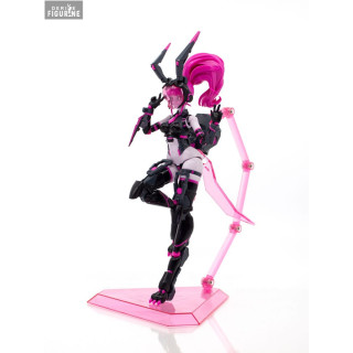 Avec son design cybernétique et son style inspiré des lapins, Vio the Rabbit SP incarne la vitesse et la précision. Son armure noire brillante, rehaussée d’accents roses et de détails futuristes, lui confère une allure à la fois gracieuse et menaçante. Ses grandes oreilles mécaniques et son appendice articulé accentuent encore davantage son aspect dynamique, la rendant immédiatement reconnaissable parmi les autres modèles.