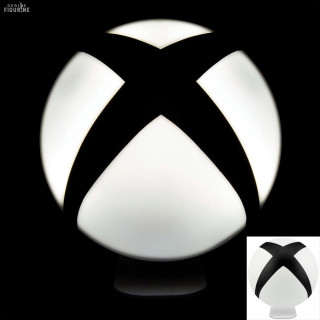Lampe officielle XBox Logo mesurant environ 20 centimètres de haut. Fonctionne en USB ou avec 3 piles AAA non incluses. Le fabricant est Paladone.