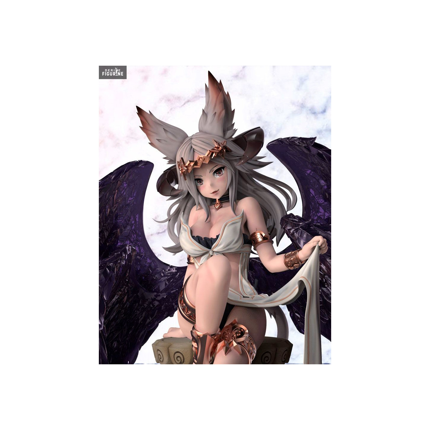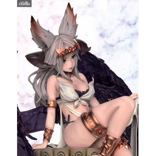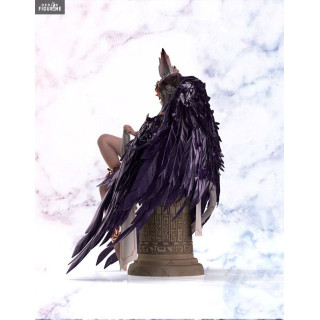 La demoiselle que voici pourrait bien être une divinité égyptienne puisqu'elle est assise sur un pilier avec des hiéroglyphes. Ce qui est certain, c'est qu'elle est vraiment belle et qu'elle possède un grand nombre de détails. On peut voir un effet de transparence au niveau des plumes et si on la regarde bien, on peut aussi voir qu'elle a des cornes, des oreilles pointues et une longue queue.
