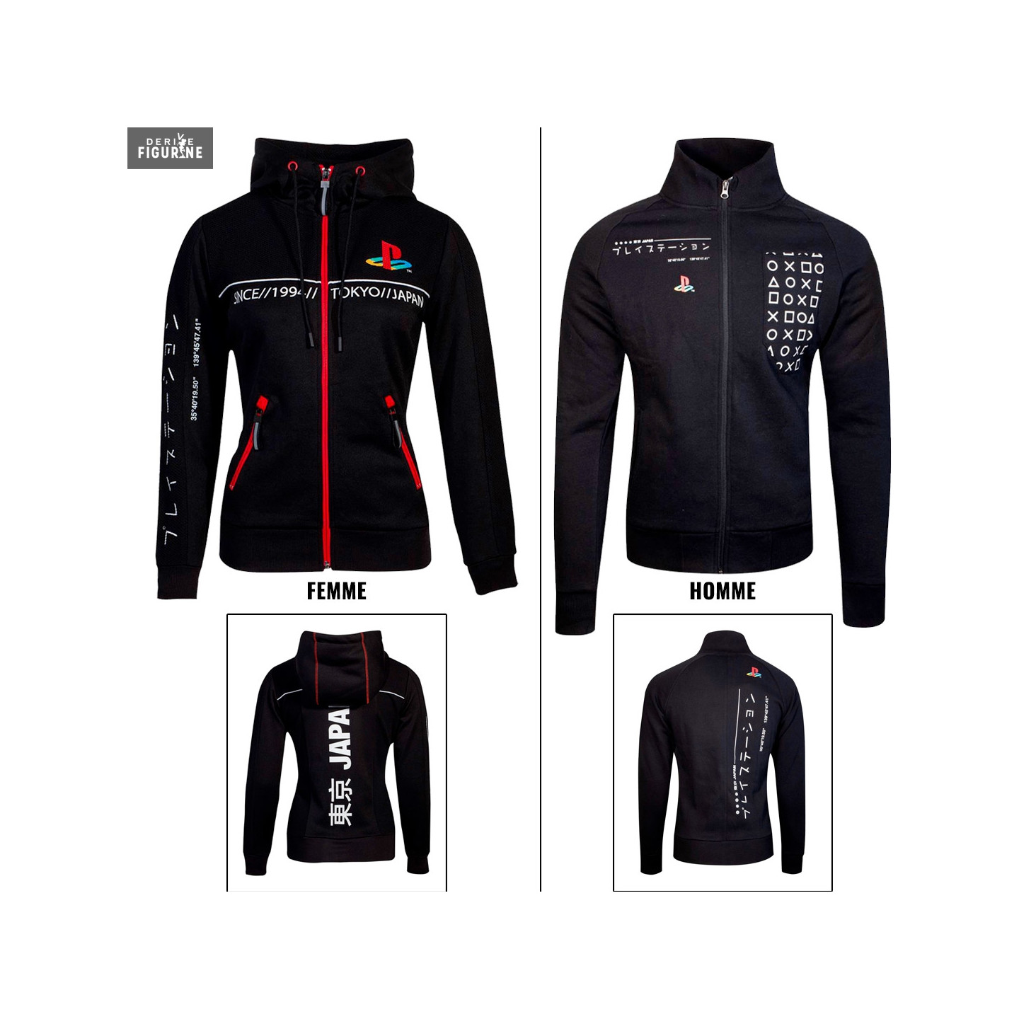 Les fans de Sony et plus particulièrement de PlayStation vont pouvoir porter des vêtements qui leur correspondent parfaitement. La version Femme a quelques touches de rouge et une capuche, tandis que celle pour Homme est plus sobre et n'a pas de capuche.