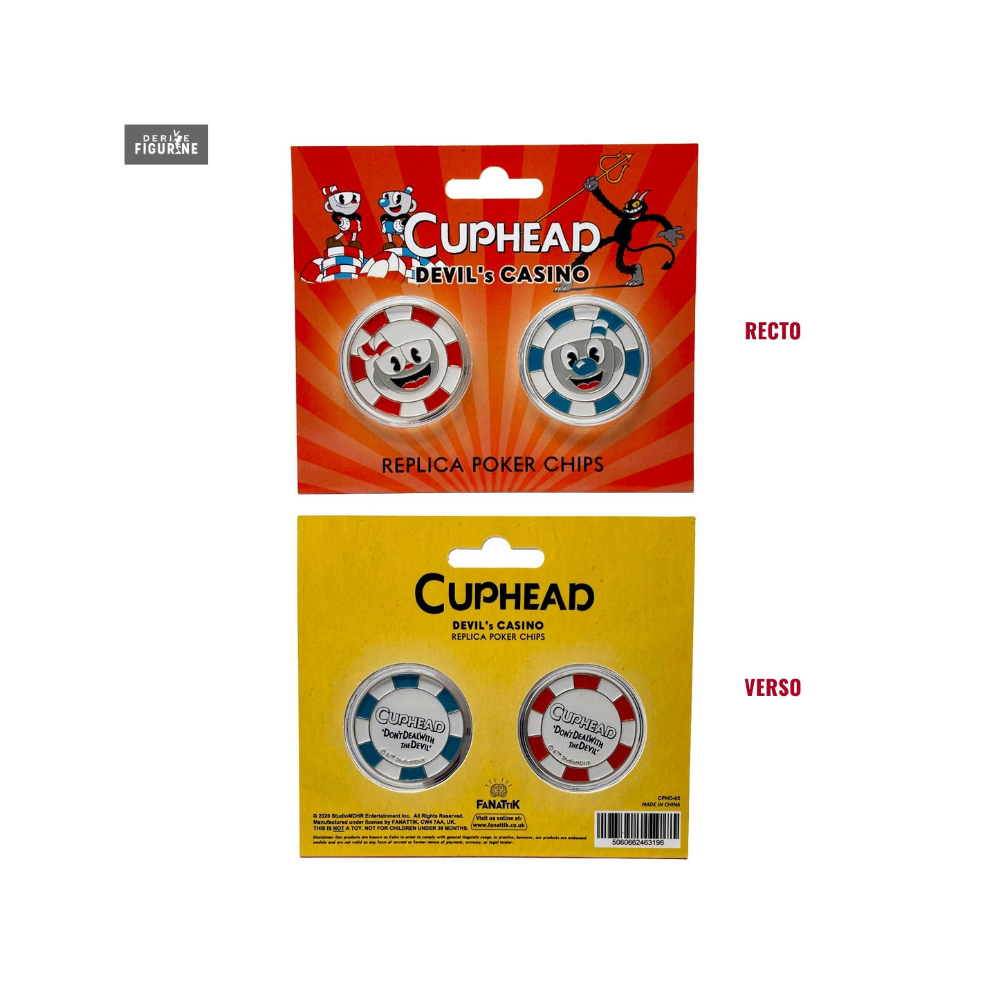 Tout comme Cuphead et Mugman, vous allez pouvoir faire un tour au casino avec ces deux répliques de jetons. Par contre, soyez un peu plus prudents qu'eux ou vous risqueriez bien de perdre votre âme aussi... Sinon, vous pouvez simplement collectionner ces deux répliques pour limiter les risques.