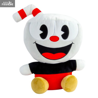 Peluche officielle de Cuphead en polyester mesurant environ 35 centimètres de haut. Elle est issue de la collection Mocchi-Mocchi. Le fabricant est Tomy.