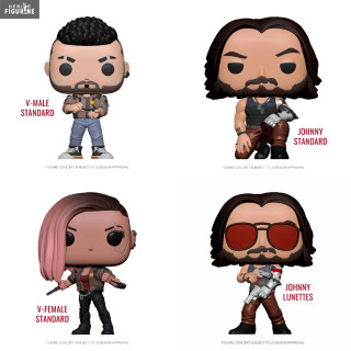 Figurine officielle de Cyberpunk 2077 au choix entre V-Male, V-Female ou Johnny Silverhand Standard ou Lunettes en vinyle mesurant environ 9 centimètres de haut. Le fabricant est Funko.