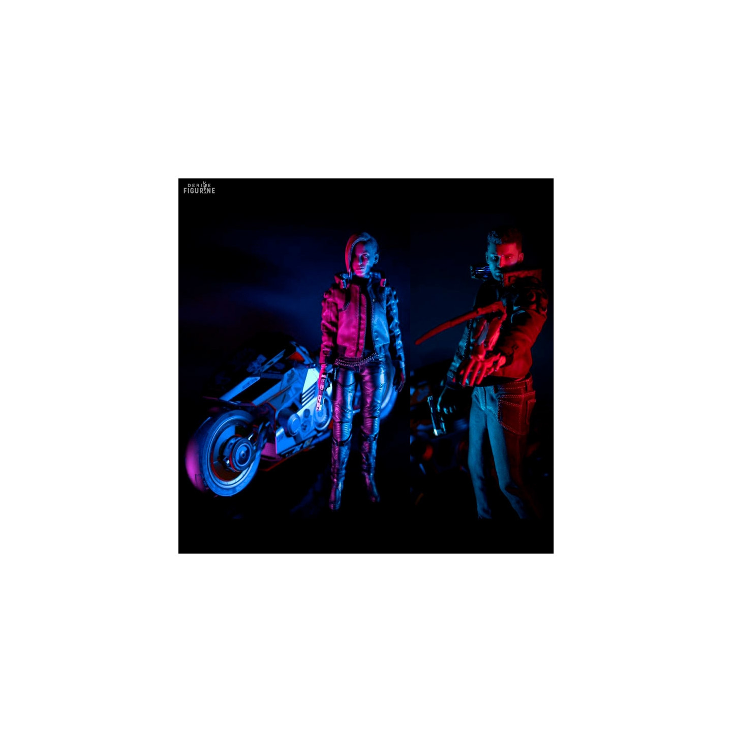 Ce pack et bundle ultime de figurines Cyberpunk 2077 vous permet en un seul d'obtenir la Moto sportive Yaiba Kusanagi, une figurine du V Male ainsi qu'une figurine de la V Female. Les deux figurines sont dotées de fonctions LEDs, disposent d'accessoires et sont articulées et la moto, moyen de transport IN GAME, est ultra détaillé et très réaliste. A noter que ce pack propose aussi un élément exclusif supplémentaire à savoir le Spider Bot.